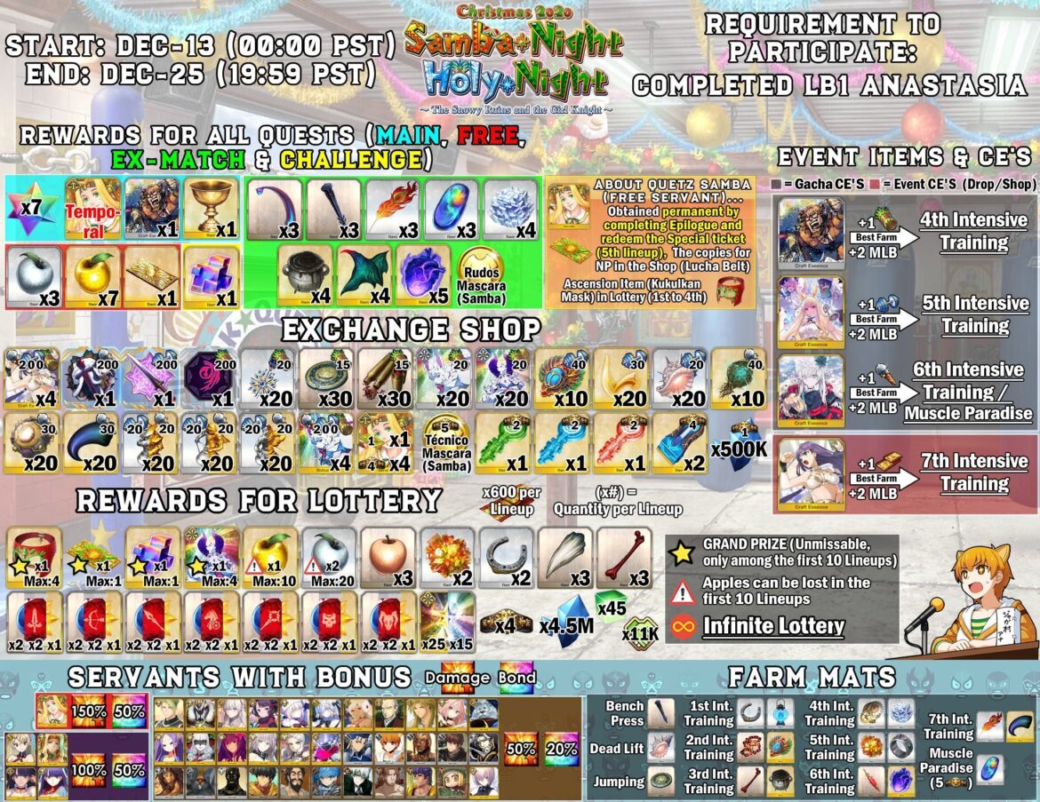 Below is the guide on you should follow for the first 7 days of the event. Once you have completed the main quest, you can focus on farming lotto currency and completing the EX Matches/Challenge Quests.